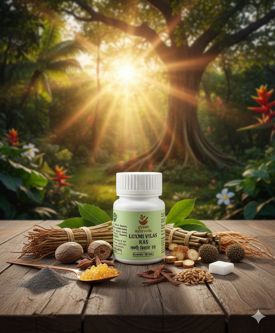 Laxmi Vilas Ras is a classical Ayurvedic formulation widely used for ear, nose, throat and respiratory disorders. It is especially beneficial in cold, cough, sinus issues and Kapha related conditions.