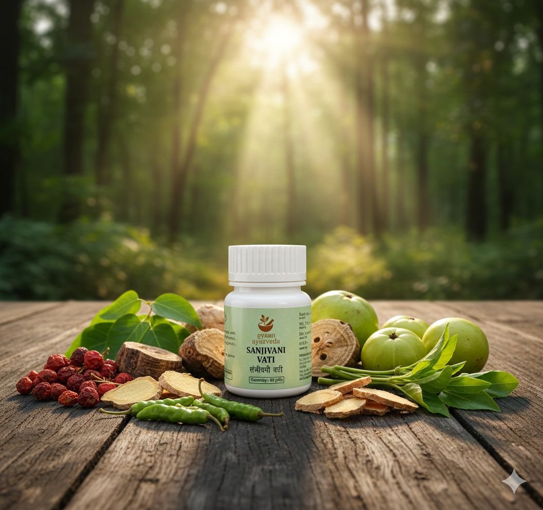 Sanjivani Vati is one of the most powerful classical Ayurvedic medicines, traditionally used for acute fever, indigestion, toxin (Ama) accumulation, and low immunity. It strengthens digestive fire and helps eliminate toxins from the body.