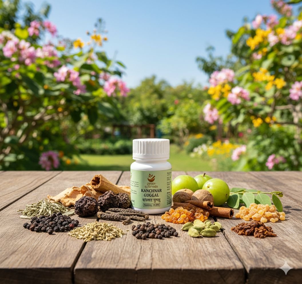 कांचनार गुग्गुल एक प्रसिद्ध शास्त्रीय आयुर्वेदिक योग है, जिसका उपयोग विशेष रूप से गांठ, ग्रंथियां, थायरॉइड असंतुलन, सूजन और मेटाबॉलिक समस्याओं में किया जाता है।