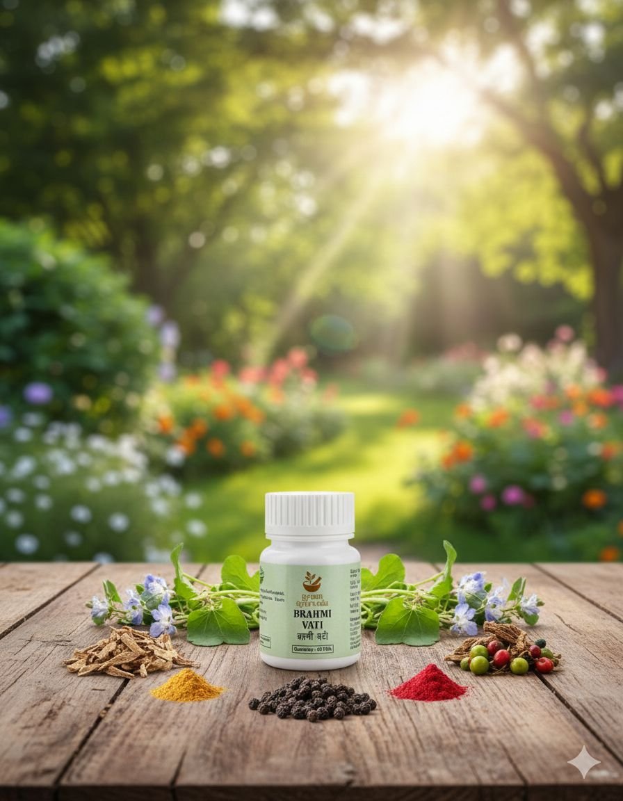 Brahmi Vati is a classical Ayurvedic formulation used to support brain health, memory enhancement, mental clarity and nervous system balance.